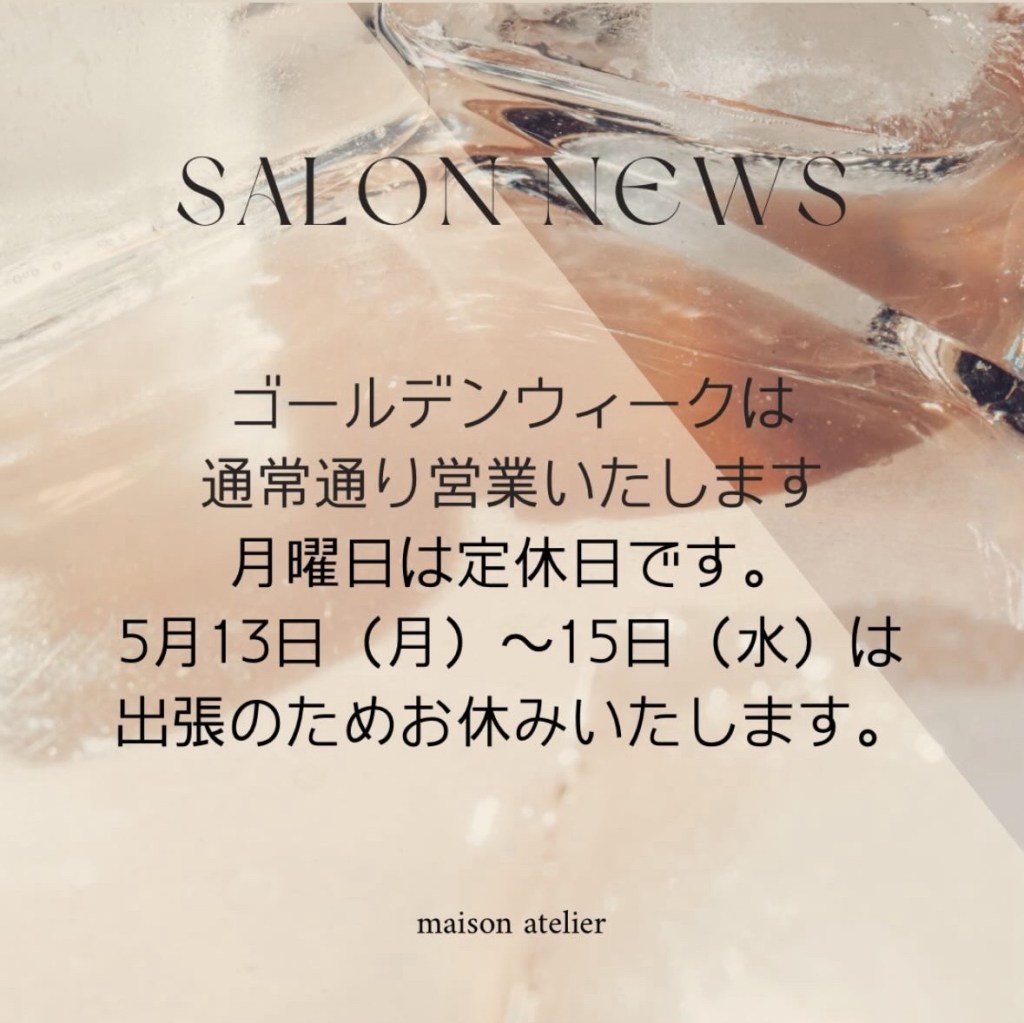 5月のお休みに関して 投稿者:maison atelier2024年5月4日カテゴリー:未分類 共有: X で共有 (新しいウィンドウで開きます) X Facebook で共有 (新しいウィンドウで開きます) Facebook いいね 読み込み中…