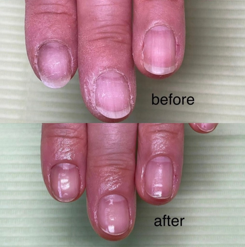 装飾性ジェルではなく、巻き爪に特化した機能性ジェルを使用し、4日間かけて自爪を広げ、正しいカーブに戻るよう誘導していきます。